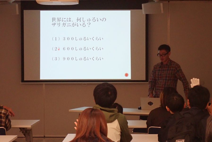 まず講師の照井氏から、北海道に生息するザリガニについてレクチャーを受け、ニホンザリガニの特徴や見分け方について教わりました。