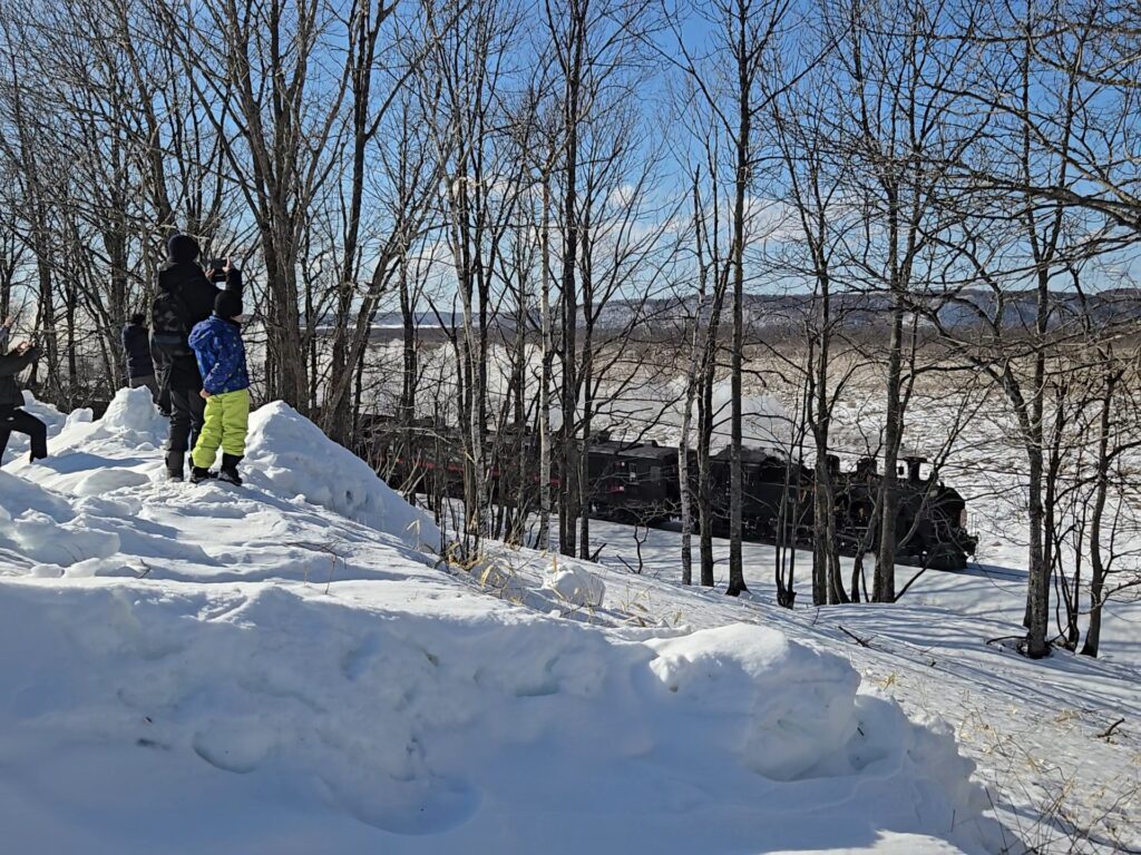塘路湖で体を動かしたのち、ぽん・ぽんゆに移動しSL「冬の湿原号」の通過を観察しました。遠くから近づいてくる汽車の音と、勇猛な車体に皆様興奮のご様子でした。