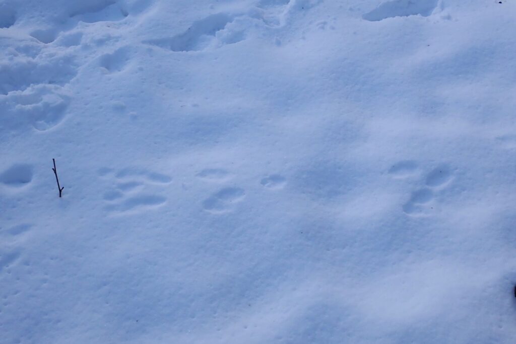 雪原で目立っていたのは、エゾシカとキタキツネの足跡でした。