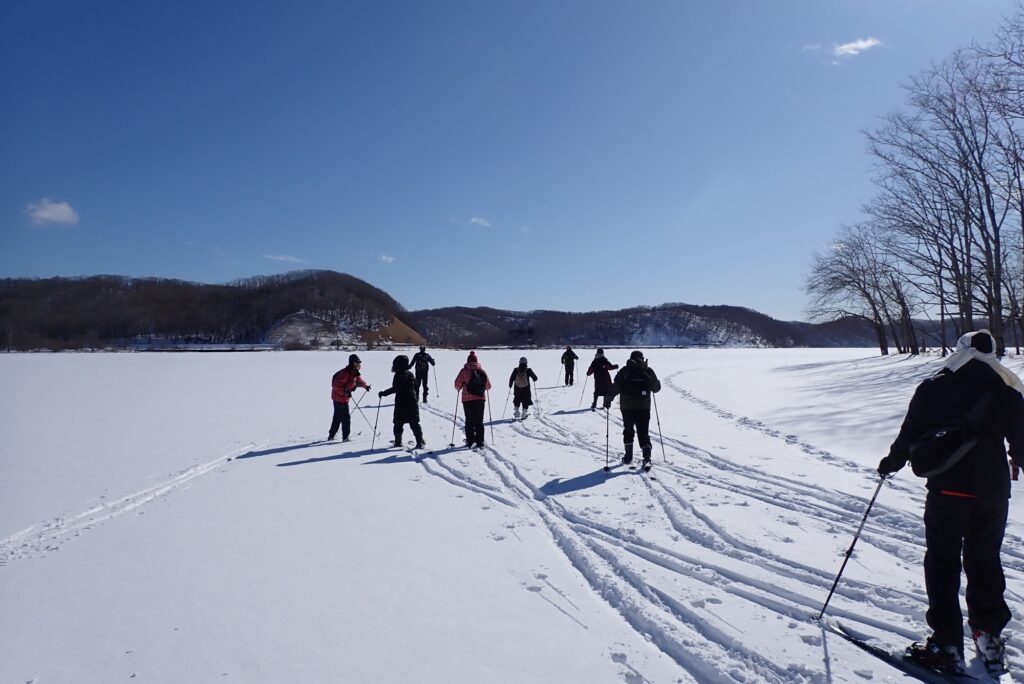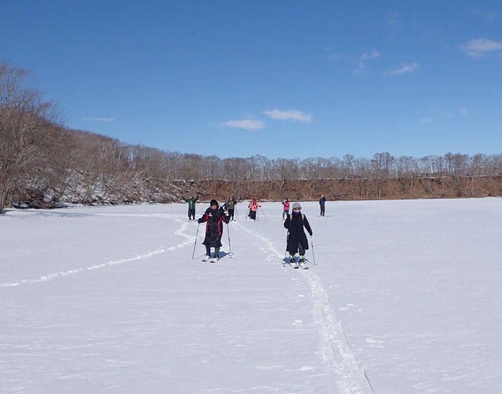 「これぞ道東」という言葉がぴったりの快晴のなか、茅沼蝶の森からシラルトロ湖へ、スキーでトレッキングを開催しました。