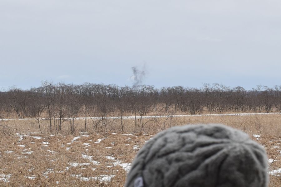 途中、本日ラストランのSL冬の湿原号の汽笛が聞こえ、その煙も遠くに見ることができました。
