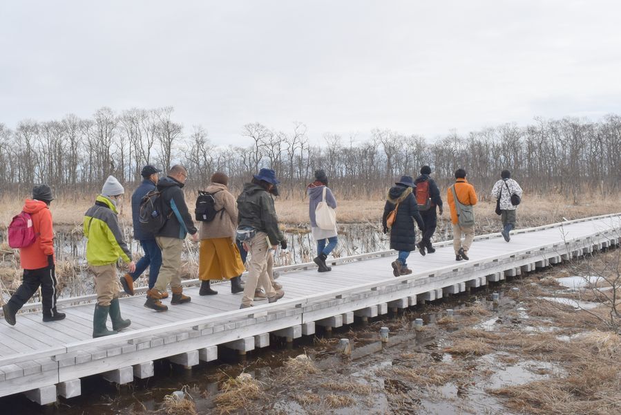 木道の入り口は、当時ほとんど樹木が見られませんでしたが、今やハンノキやヤチダモが茂り、見通しが随分と違っていました。